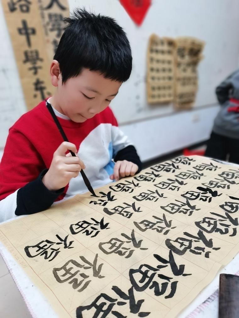 湖北省武漢市小學生參加寒假書法活動。(受訪者供圖)