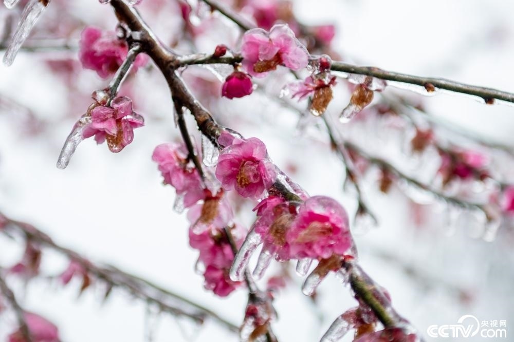 杭州,連續(xù)低溫下,雨凇現(xiàn)象頻現(xiàn)。位于半山國(guó)家森林公園的望宸閣出現(xiàn)“冰凍梅花”景觀。