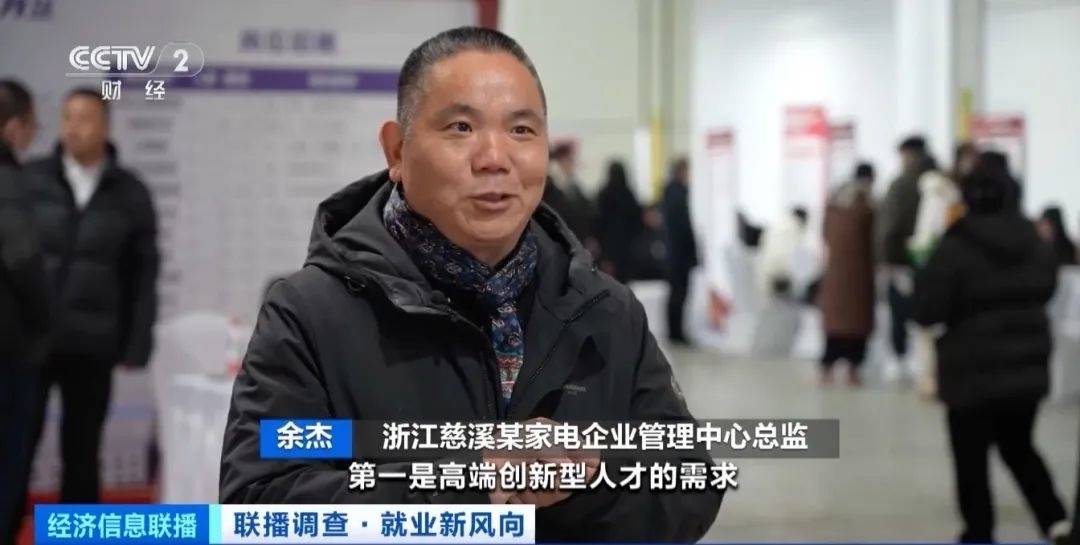 浙江慈溪某家電企業(yè)管理中心總監(jiān) 余杰:第一是高端創(chuàng)新型人才的需求,第二是一線產(chǎn)業(yè)工人的需求。接下來幾年,我們企業(yè)對(duì)智能化、數(shù)字化的人才有大量需求,市場很欠缺。