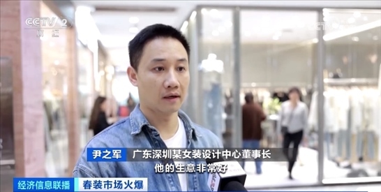 廣東深圳某女裝設(shè)計(jì)中心董事長(zhǎng) 尹之軍:今年的春裝賣得非常好,同比增長(zhǎng)20%左右。因?yàn)樘鞖獾膯栴},夏裝反而沒有想象中那么好,春裝準(zhǔn)備足夠充分的商戶,生意非常好,貨不夠賣。但是只準(zhǔn)備夏裝的商戶,他們現(xiàn)在都在期盼天氣趕緊熱起來。