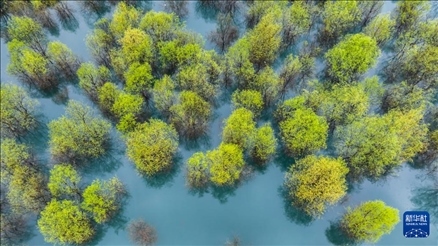 新疆巴州,隨著天氣轉(zhuǎn)暖,冰雪消融的博斯騰湖迎來(lái)大批候鳥。