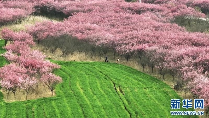 近日,湖北省老河口市李樓鎮(zhèn)鮑河村400畝紅梅次第開放,園內(nèi)宛若一幅紅粉畫卷。