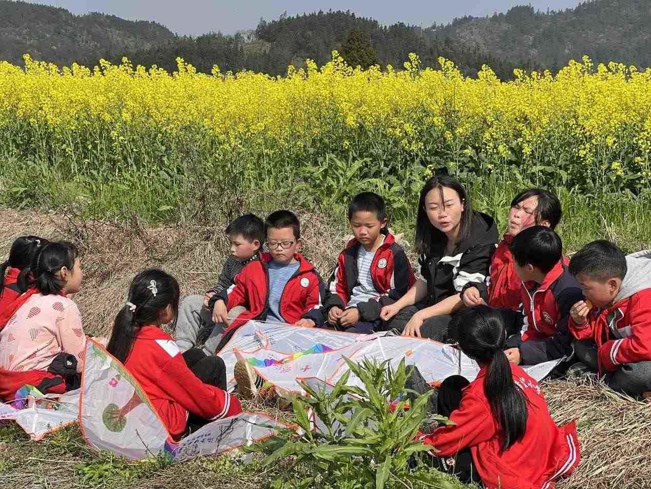 李柏霖不愿意讓孩子們覺得這樣的情緒是生活的全部。她把課堂搬到野外,在“搖搖花”開的時候帶孩子們?nèi)タ础皳u搖花”,油菜花開時去看油菜花?;ㄒ彩窃?,家鄉(xiāng)也是詩——若非如此,老師為什么走了又回呢?