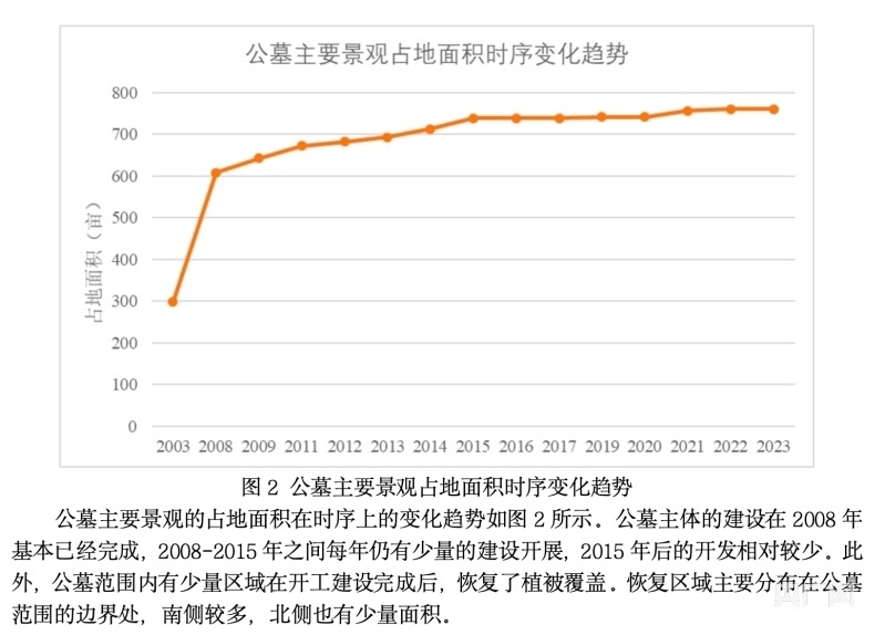 位于青島城陽區(qū)夏莊街道華陰社區(qū)太平山的太平陵公墓,地處嶗山山脈西麓,在嶗山風(fēng)景區(qū)保護(hù)范圍內(nèi)。該公墓是1996年經(jīng)民政部門審批的經(jīng)營性公墓,合法審批面積為87.53畝。遙感衛(wèi)星影像分析顯示,該公墓大面積非法擴(kuò)建已持續(xù)多年,存在毀林挖山建墓地的情況。