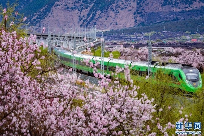 雪域高原桃花開,復(fù)興號(hào)上賞春光。拉林鐵路的車票,猶如一張賞花請柬,吸引了眾多游客前來雪域高原賞桃花。