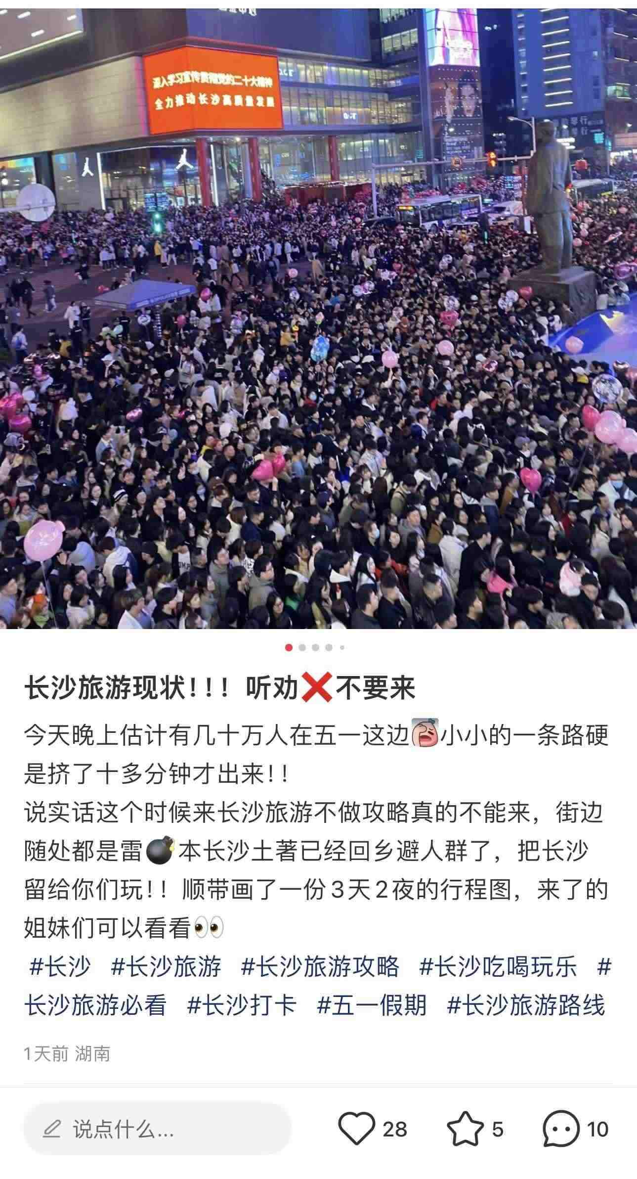 其中長沙和南京在社交平臺上似乎被“攻打”最多。某IP位于湖南的網(wǎng)友在社交平臺發(fā)布的筆記稱:“帶隊攻打的岳麓山……長沙很好玩,下次不節(jié)假日來了……我差點擠死在長沙。”