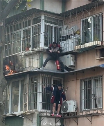 ·浙江寧波一小區(qū)陽臺起火,快遞小哥徒手爬3樓滅火。