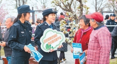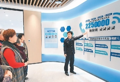 浙江省湖州市吳興區(qū)愛山街道警務(wù)人員向群眾介紹網(wǎng)絡(luò)反詐知識。新華社記者 翁忻旸攝