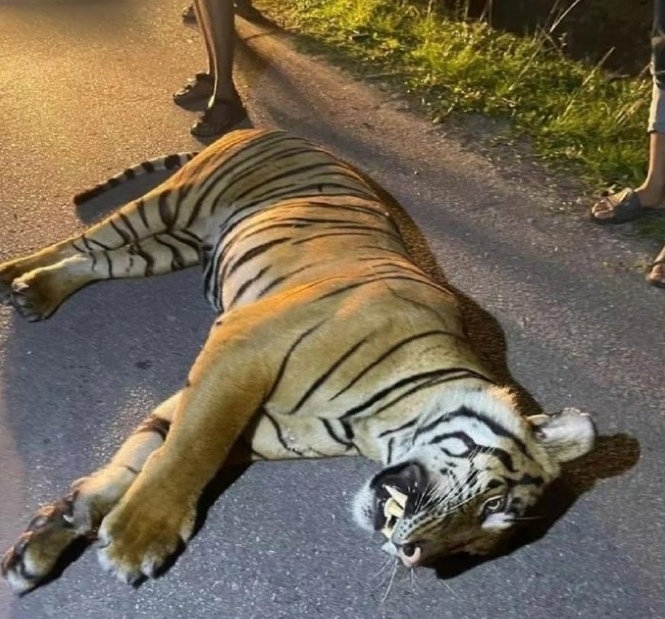 ·馬來(lái)西亞一只老虎過(guò)馬路被汽車撞死。