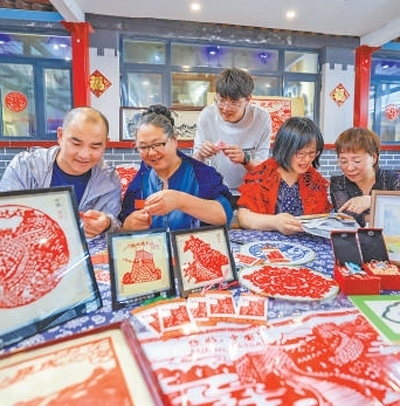 自2018年建成以來,石峽村村史博物館成為村民定期培訓(xùn)的地方,也逐漸成為游客來石峽村游玩的打卡地之一。博物館以實物、文字、影像等方式展現(xiàn)了村落歷史、非遺項目、居家生活、農(nóng)耕勞作等內(nèi)容?!拔覀冞€推出了帶有長城元素的布藝、剪紙、羽毛畫等互動體驗項目?!辈┪镳^負責人魏曉蕓說。
