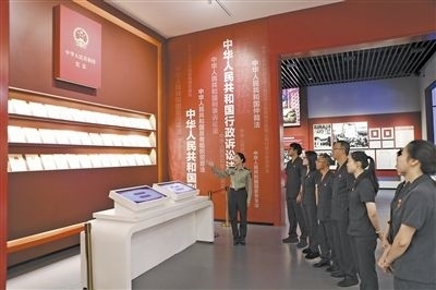 近日,江西省瑞金市人民法院分批次組織黨員干部前往中華蘇維埃共和國法制建設(shè)紀(jì)念館參觀學(xué)習(xí),共同回顧紅色法治發(fā)展軌跡,賡續(xù)紅色法治血脈。紀(jì)念館中復(fù)原的“七里坪革命法庭”“馬錫五下鄉(xiāng)斷案”場景逼真且震撼,黨員干部不時(shí)駐足觀看,互相交流討論。圖為法院黨員干部聆聽講解。