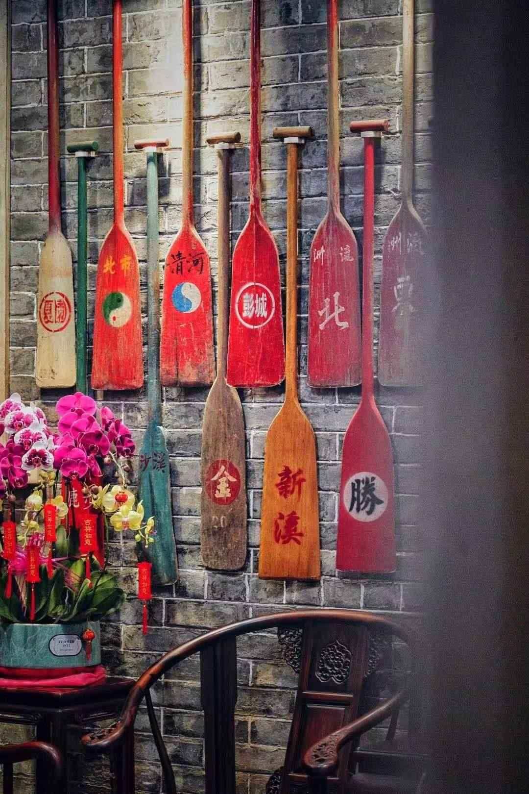 在張偉潮工作室的青磚墻上掛滿了劃龍舟所用的船槳?!皝砣↓堫^的人大多會(huì)送一面錦旗,我說不要錦旗,可以把你們不用的槳送給我?!边@些年張偉潮陸續(xù)收到了300多支船槳,在他看來,每一把槳都蘊(yùn)含著自己隊(duì)伍、村落的故事,每一把都是獨(dú)一無二的,他要把船槳當(dāng)作錦旗一樣高高地掛在墻上。