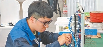 手持記號筆,目光如炬,只見軌道信號控制技術項目選手陳權(quán)(見圖,本報記者蔣雨師攝)在電路圖里精準鎖定電路,將一個個接點逐一填入配線表,動作行云流水,一氣呵成。在大賽現(xiàn)場,軌道信號控制技術項目選手需要完成軌道信號設備的設計、施工、調(diào)試與檢修工作。就設計環(huán)節(jié)而言,選手們需要把上百條電路信號的轉(zhuǎn)轍機電路設計圖轉(zhuǎn)換為電路配線表,但凡有一個接點錯誤,整個電路都將出現(xiàn)問題,而這一環(huán)節(jié),陳權(quán)只花了10分鐘。
