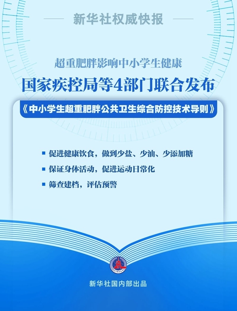 7月22日,國(guó)家疾控局、教育部、國(guó)家衛(wèi)生健康委和國(guó)家體育總局聯(lián)合發(fā)布《中小學(xué)生超重肥胖公共衛(wèi)生綜合防控技術(shù)導(dǎo)則》。