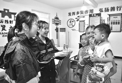 7月25日,在福建福清市江陰鎮(zhèn)后陳村轉(zhuǎn)移安置點(diǎn),鄉(xiāng)鎮(zhèn)工作人員(左一、左二)給轉(zhuǎn)移安置群眾送來(lái)食品和生活必需品。新華社記者 魏培全攝