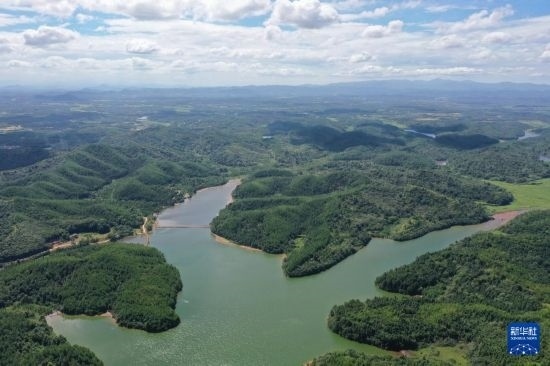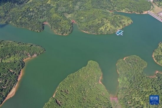 這是江西省撫州市臨川區(qū)秋溪鎮(zhèn)溪山湖水庫(7月25日攝,無人機照片)。