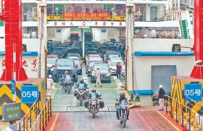 為避免造成擁堵,多部門和輪渡企業(yè)多措并舉,在距離港區(qū)5公里的地方設(shè)置查驗(yàn)點(diǎn),提前購票、距離開船不超過兩小時(shí)的車輛,徑直通過閘機(jī)檢票后,駛往進(jìn)港待渡區(qū)域。不符合通行條件的車輛駛?cè)雽S猛ǖ离x開。