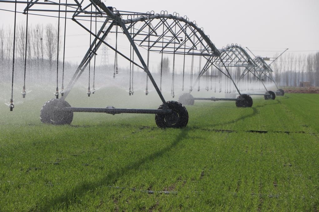 圖為種糧大戶(hù)使用自動(dòng)噴灌設(shè)備給麥田澆水。(張靜 攝)