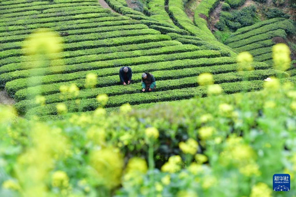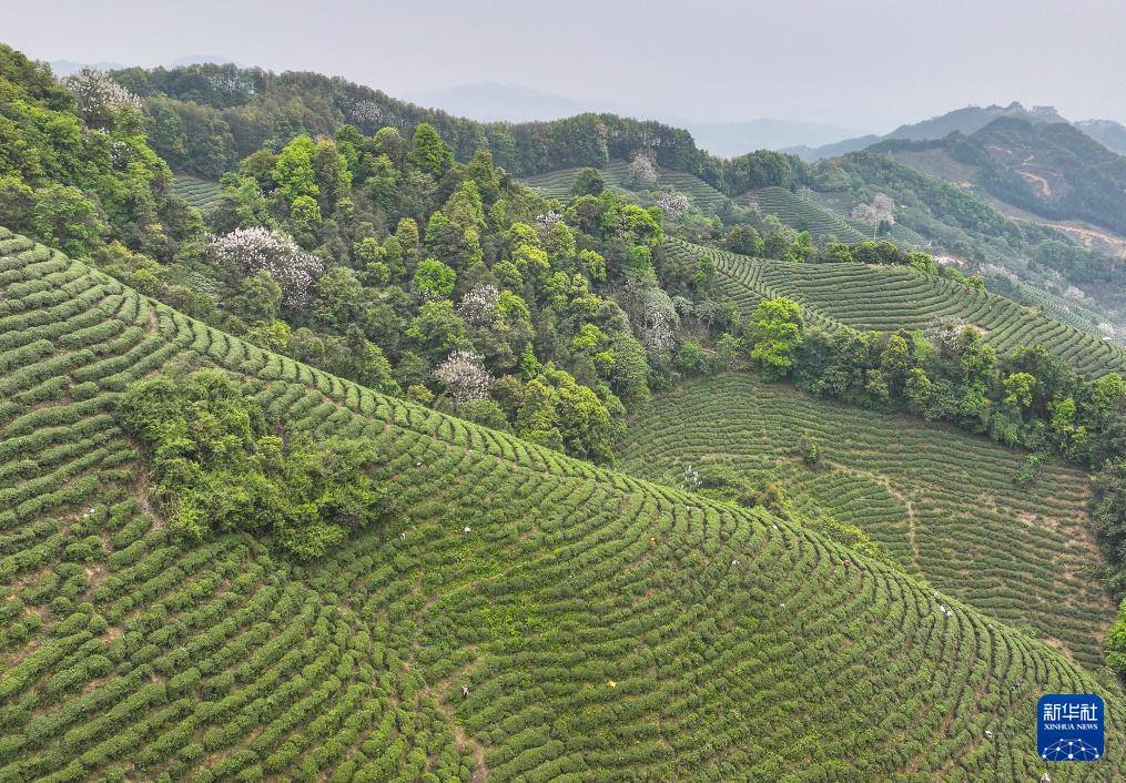 清明時(shí)節(jié)是春茶采摘旺季,茶農(nóng)在茶園內(nèi)忙碌,采制新茶供應(yīng)市場(chǎng)。