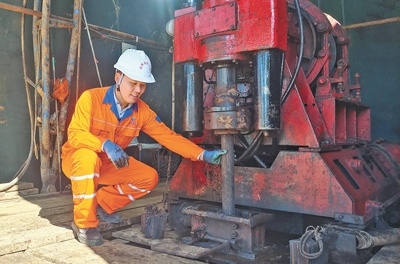 “一開始,看著其他同學(xué)生活多姿多彩,我內(nèi)心曾有些許波動(dòng)。但當(dāng)看到前輩們說起找到礦時(shí)神采奕奕的樣子,我心里就有了底氣,也明白了堅(jiān)守的意義?!笔┕み^程中,李寬和同事潛心研究、認(rèn)真分析,解決了鉆孔縮徑、掉塊、漏失等多個(gè)技術(shù)難題。