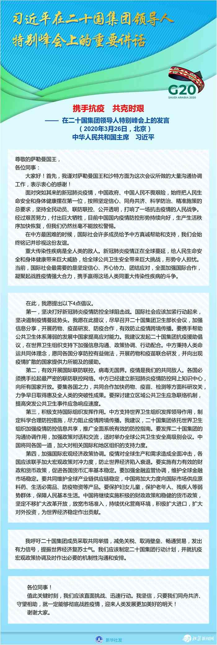 習(xí)近平在二十國集團(tuán)領(lǐng)導(dǎo)人特別峰會(huì)上的重要講話(全文)