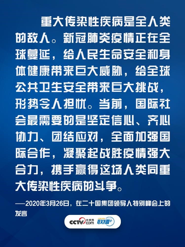 在外交場合,習主席因時因勢不斷闡釋團結抗疫的重要性,為全球抗疫注入信心與力量?!堵?lián)播+》特梳理其中振奮人心的話語,與您一起學習領悟其中要義。