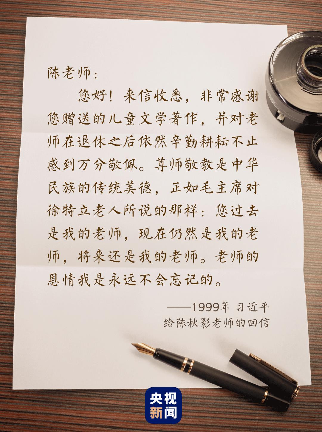 尺素寸心,情意拳拳。陳秋影說,在她看來,習(xí)近平在回信中使用的“尊師敬教”這個(gè)詞,一個(gè)“敬”字道出了學(xué)生對(duì)老師的情誼。