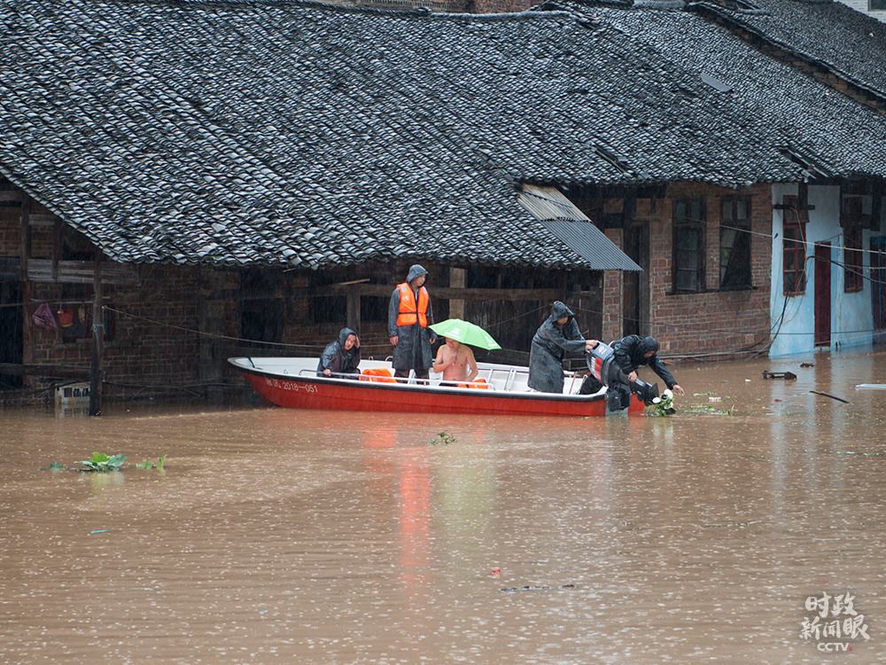 △今年7月初,湖南新邵縣遭遇強降雨,搶險救災組迅速轉移受災群眾。