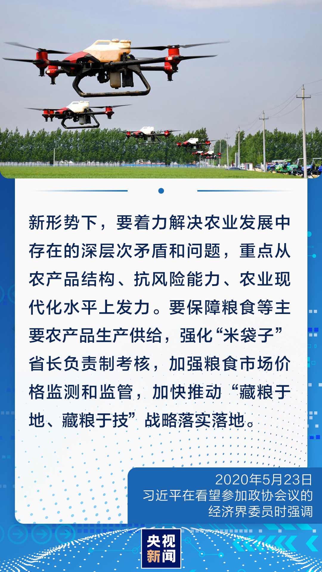 對(duì)我們這樣一個(gè)有著14億人口的大國(guó)來(lái)說(shuō),農(nóng)業(yè)基礎(chǔ)地位任何時(shí)候都不能忽視和削弱,手中有糧、心中不慌在任何時(shí)候都是真理。今年開(kāi)春,習(xí)近平總書(shū)記對(duì)全國(guó)春季農(nóng)業(yè)生產(chǎn)工作作出重要指示強(qiáng)調(diào),越是面對(duì)風(fēng)險(xiǎn)挑戰(zhàn),越要穩(wěn)住農(nóng)業(yè),越要確保糧食和重要副食品安全。