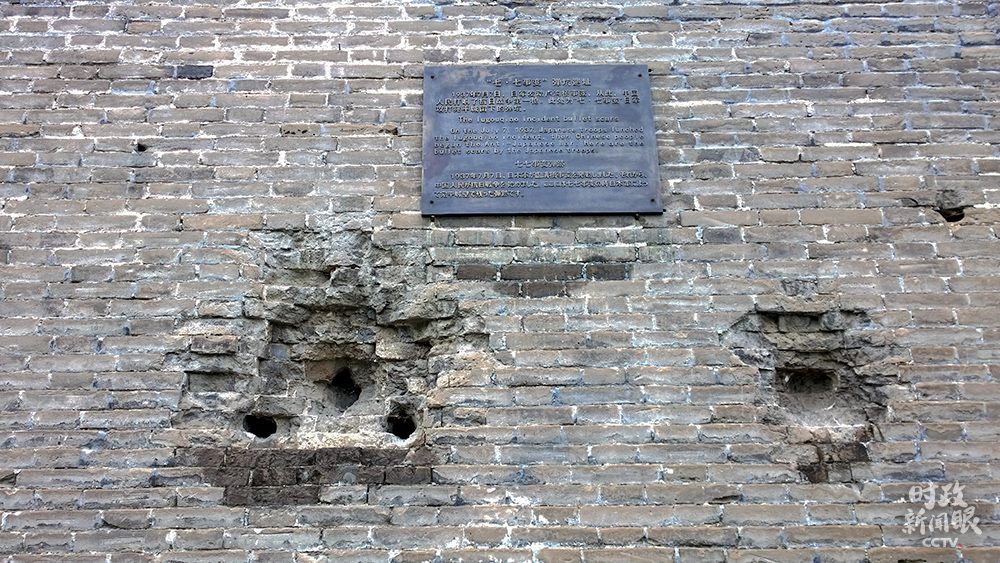 △這是“七七事變”日軍攻打宛平城留下的彈坑。