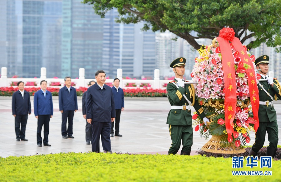 10月14日,深圳經(jīng)濟特區(qū)建立40周年慶祝大會在廣東省深圳市隆重舉行。中共中央總書記、國家主席、中央軍委主席習近平在會上發(fā)表重要講話。這是當天下午,習近平來到蓮花山公園,向鄧小平同志銅像敬獻花籃。 新華社記者 李響 攝