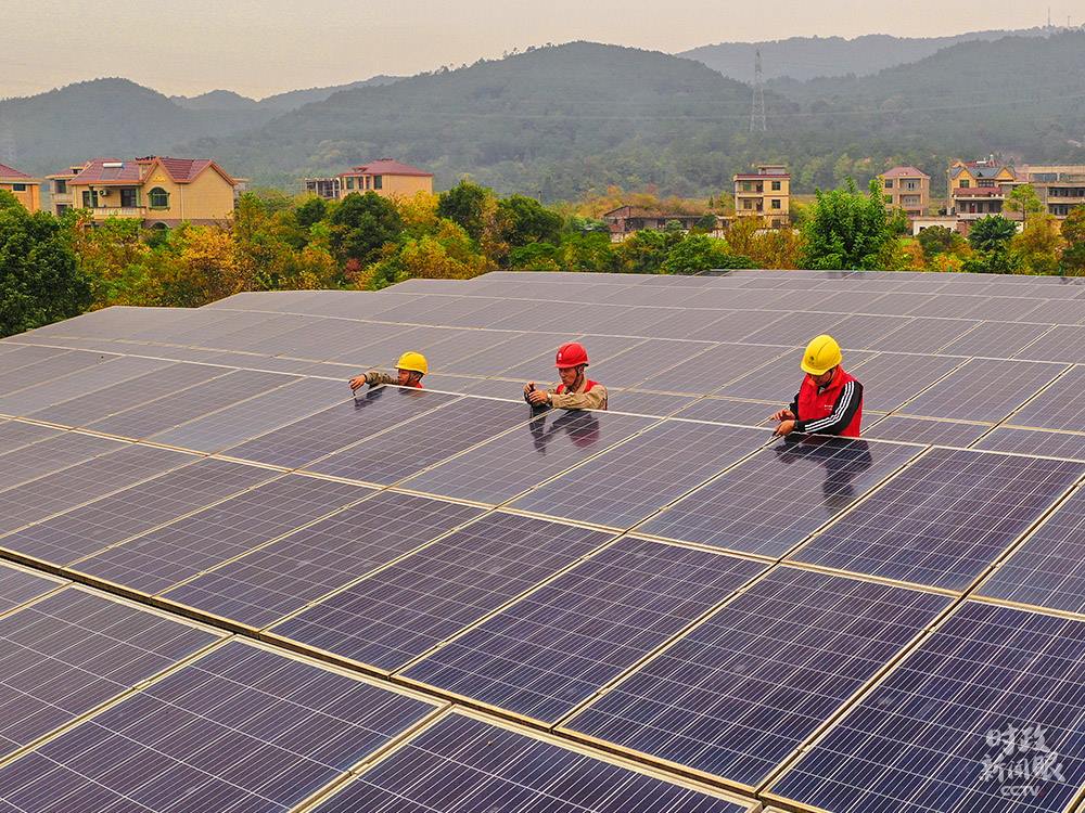 △江西吉安黃崗村,供電公司工人正在檢修“光伏+取暖”設(shè)備,保障村民溫暖過冬。