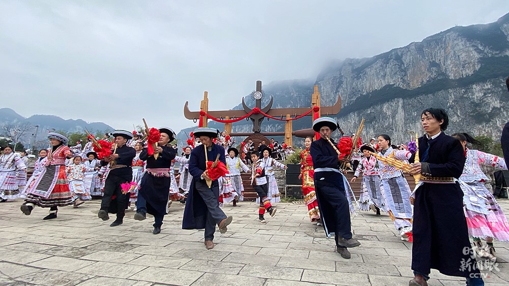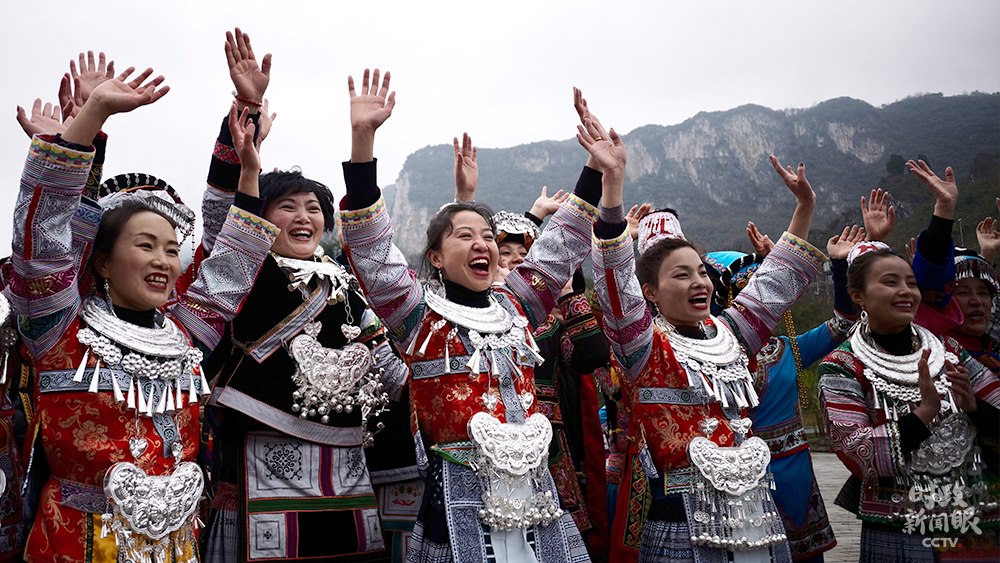 播放視頻畫中畫△視頻丨化屋村村民唱起苗族語歡歌,歌詞大意是“我們都是好朋友,一起跳舞吧”。(總臺(tái)央視記者楊立峰拍攝)