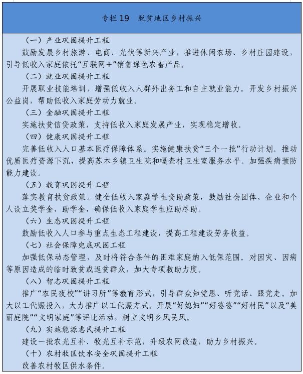 ——民生福祉達到更高水平。城鄉(xiāng)居民收入增長和經(jīng)濟增長基本同步,分配結(jié)構(gòu)明顯改善,統(tǒng)籌城鄉(xiāng)的基本公共服務(wù)實施標準進一步完善,基本公共服務(wù)更加優(yōu)質(zhì)均衡,就業(yè)更加充分更有質(zhì)量,教育現(xiàn)代化水平明顯提升,社會保障、養(yǎng)老服務(wù)、衛(wèi)生健康體系更加健全完善,脫貧攻堅成果鞏固拓展,鄉(xiāng)村振興戰(zhàn)略全面推進,人民對美好生活的向往得到更好滿足。