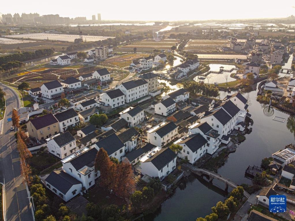 浙江省嘉興市秀洲區(qū)油車(chē)港鎮(zhèn)勝豐村景色( 2020年12月15日攝,無(wú)人機(jī)照片)。新華社記者 江漢 攝