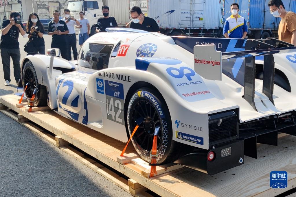 第四屆進(jìn)博會(huì)首批進(jìn)境展品米其林氫能源賽車(chē)樣車(chē)在上海完成通關(guān)驗(yàn)放(9月27日攝)。新華社發(fā)