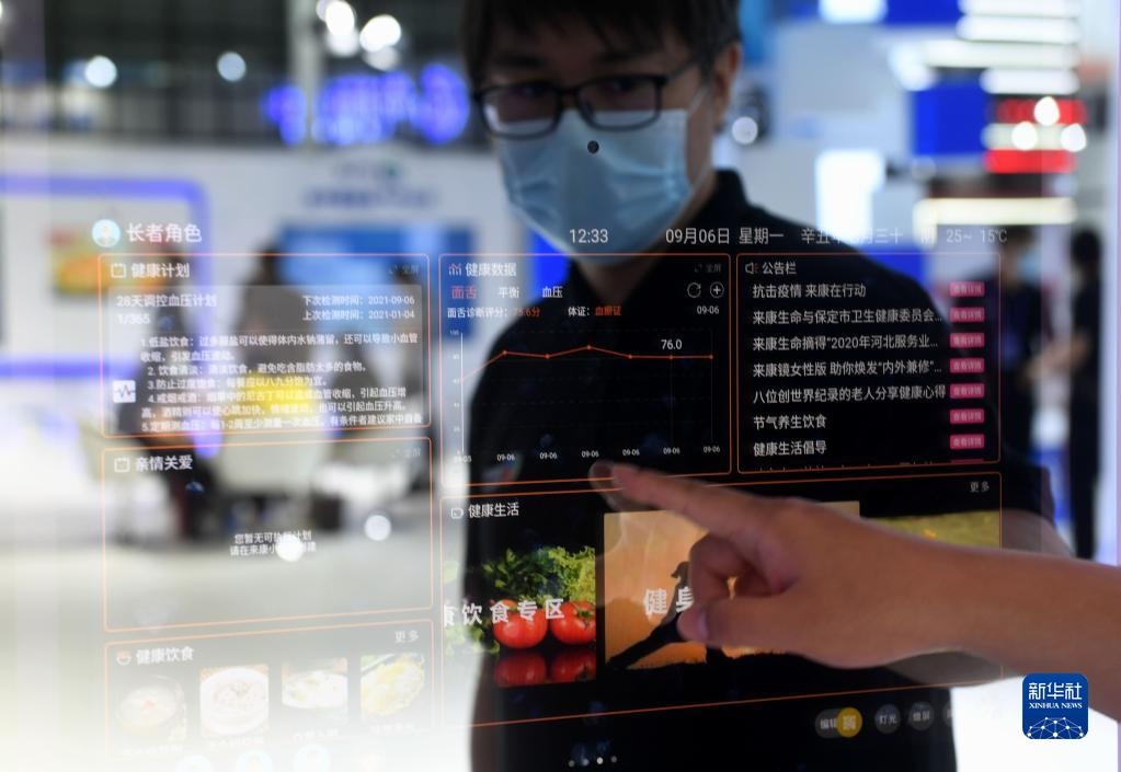 9月6日至8日,2021中國國際數(shù)字經(jīng)濟博覽會在河北石家莊舉行。這是工作人員在博覽會上操作智能鏡子(9月6日攝)。新華社記者 王曉 攝