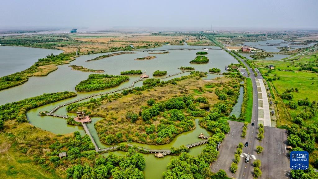 這是5月13日拍攝的山東黃河三角洲國家級自然保護區(qū)景色(無人機照片)。新華社記者 郭緒雷 攝