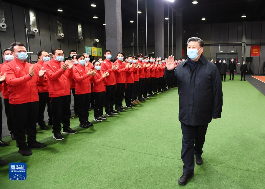 1月4日,中共中央總書記、國(guó)家主席、中央軍委主席習(xí)近平在北京考察2022年冬奧會(huì)、冬殘奧會(huì)籌辦備賽工作。這是4日下午,習(xí)近平在二七廠冰雪項(xiàng)目訓(xùn)練基地專項(xiàng)體能訓(xùn)練館,向運(yùn)動(dòng)員、教練員、服務(wù)保障人員揮手致意。新華社記者 謝環(huán)馳 攝