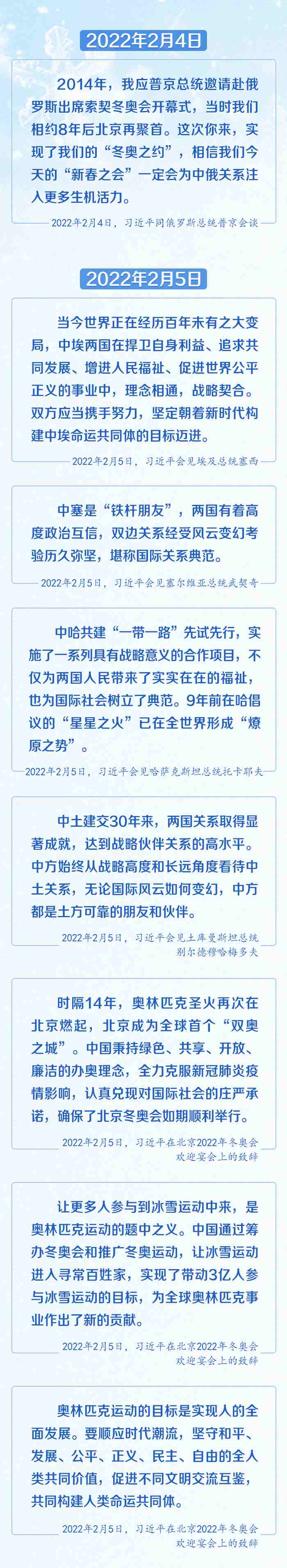 2月20日晚,第二十四屆冬季奧林匹克運(yùn)動(dòng)會(huì)在北京圓滿閉幕。北京冬奧會(huì)期間,習(xí)近平主席密集開展一系列外事活動(dòng),向世界傳遞著中國(guó)同各國(guó)團(tuán)結(jié)合作、“一起向未來”的信號(hào)。