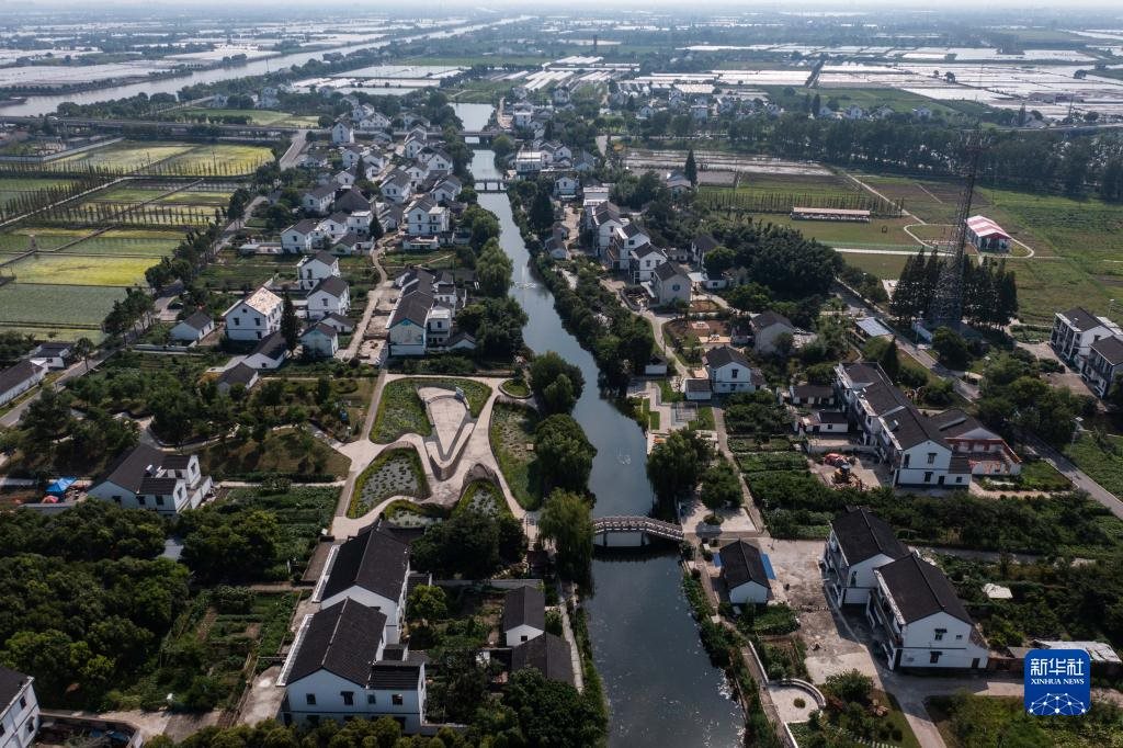 空中俯瞰浙江省嘉興市嘉善縣姚莊鎮(zhèn)橫港村(2021年7月12日攝,無人機照片)。近年來,嘉善縣建設高標準農田14.8萬畝;同時建設產業(yè)幫扶聯合體、農業(yè)社會化服務綜合體等,不斷拓寬農民增收致富渠道,走出了一條城鄉(xiāng)深度融合推動共同富裕的實踐路子。新華社記者徐昱攝