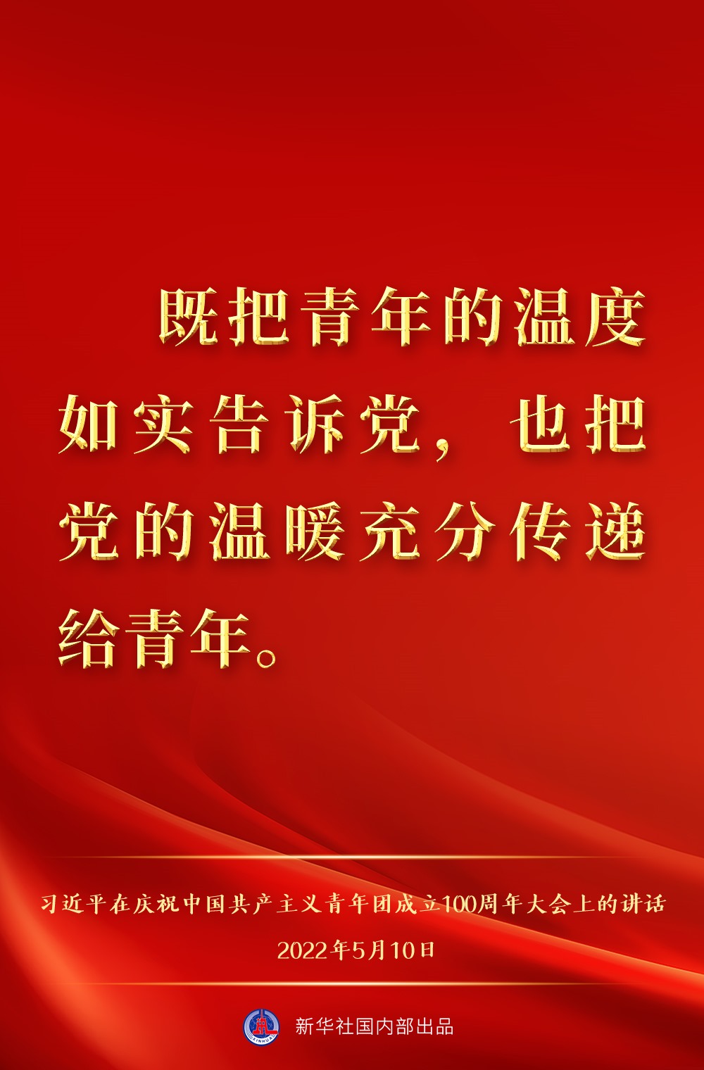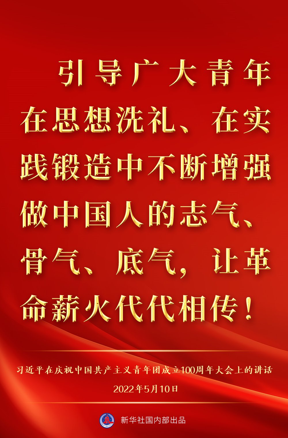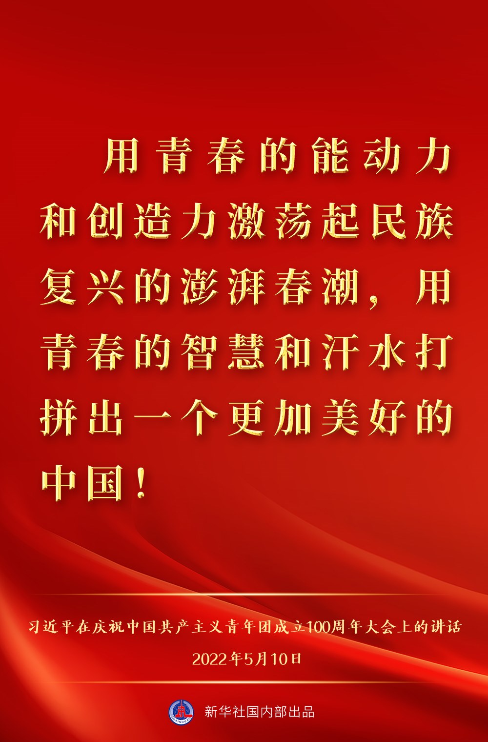 5月10日上午,中共中央總書記、國家主席、中央軍委主席習(xí)近平出席慶祝中國共產(chǎn)主義青年團成立100周年大會并發(fā)表重要講話,一起來看金句。