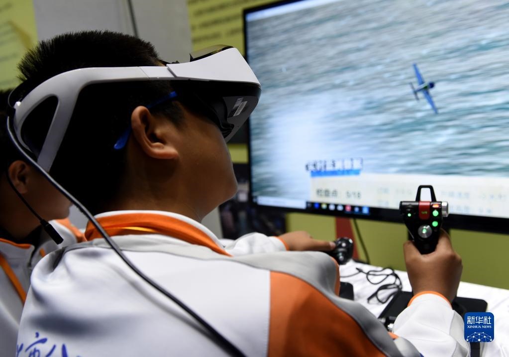 北京市八一學(xué)校的學(xué)生在北京市中小學(xué)生特色科技活動展示上體驗(yàn)VR技術(shù)(2018年11月24日攝)。新華社記者 羅曉光 攝