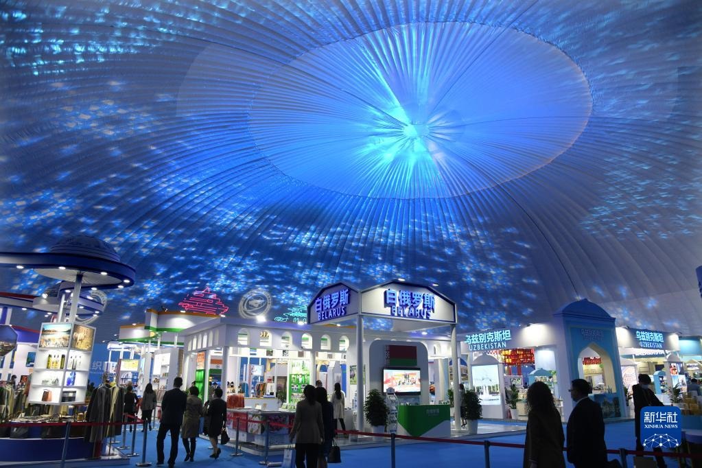 與會(huì)嘉賓在各國(guó)形象館展區(qū)參觀(2021年4月26日攝)。當(dāng)日,2021上海合作組織國(guó)際投資貿(mào)易博覽會(huì)暨上海合作組織地方經(jīng)貿(mào)合作青島論壇在青島開幕。新華社記者 李紫恒 攝