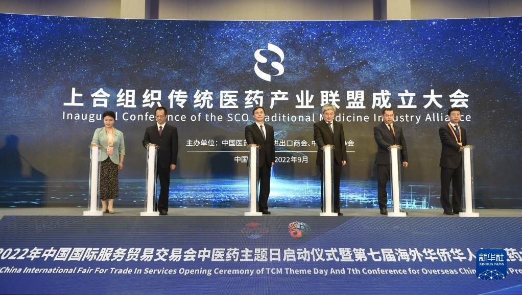 與會(huì)嘉賓在北京出席上合組織傳統(tǒng)醫(yī)藥產(chǎn)業(yè)聯(lián)盟成立儀式(2022年9月1日攝)。新華社記者 魯鵬 攝