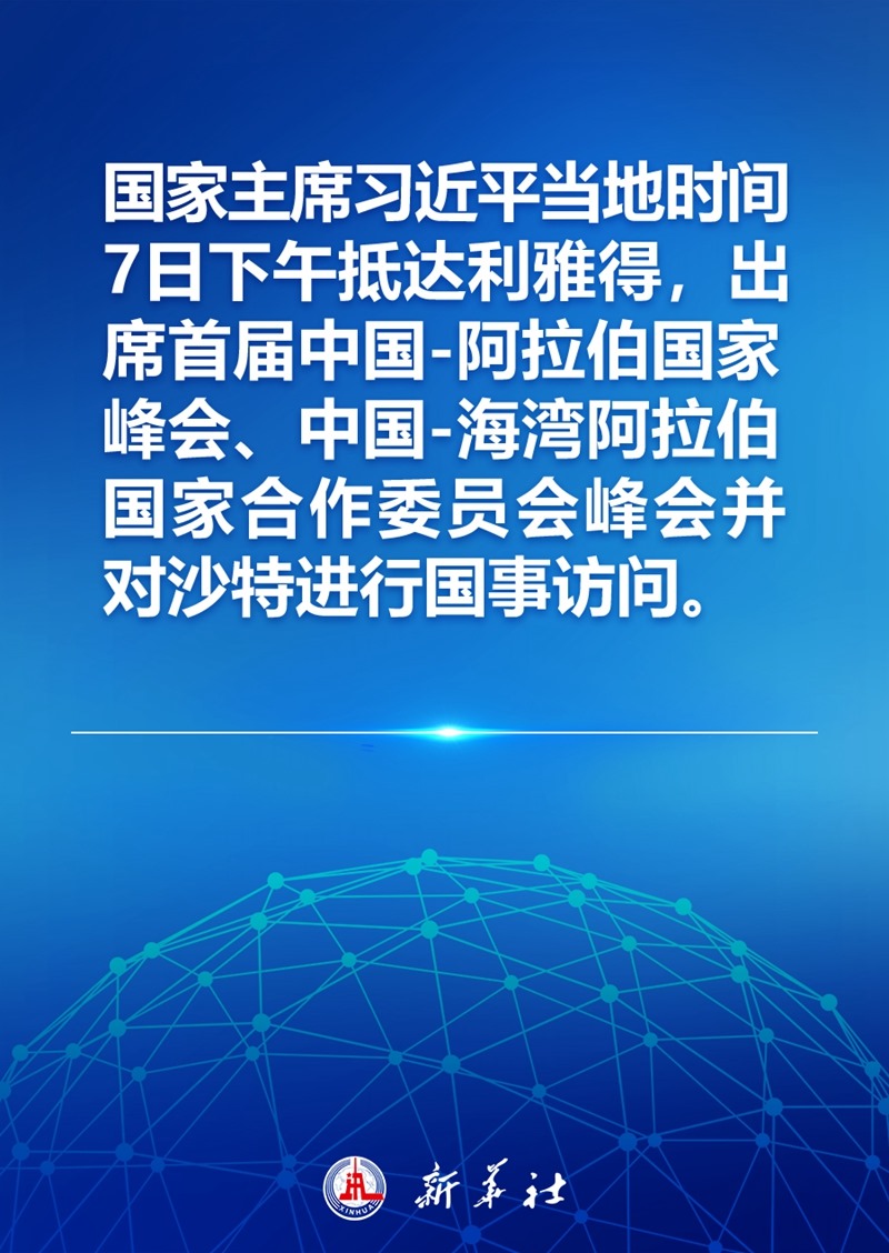 新華社快訊:國家主席習(xí)近平當(dāng)?shù)貢r(shí)間7日下午抵達(dá)利雅得,出席首屆中國-阿拉伯國家峰會(huì)、中國-海灣阿拉伯國家合作委員會(huì)峰會(huì)并對沙特進(jìn)行國事訪問。
