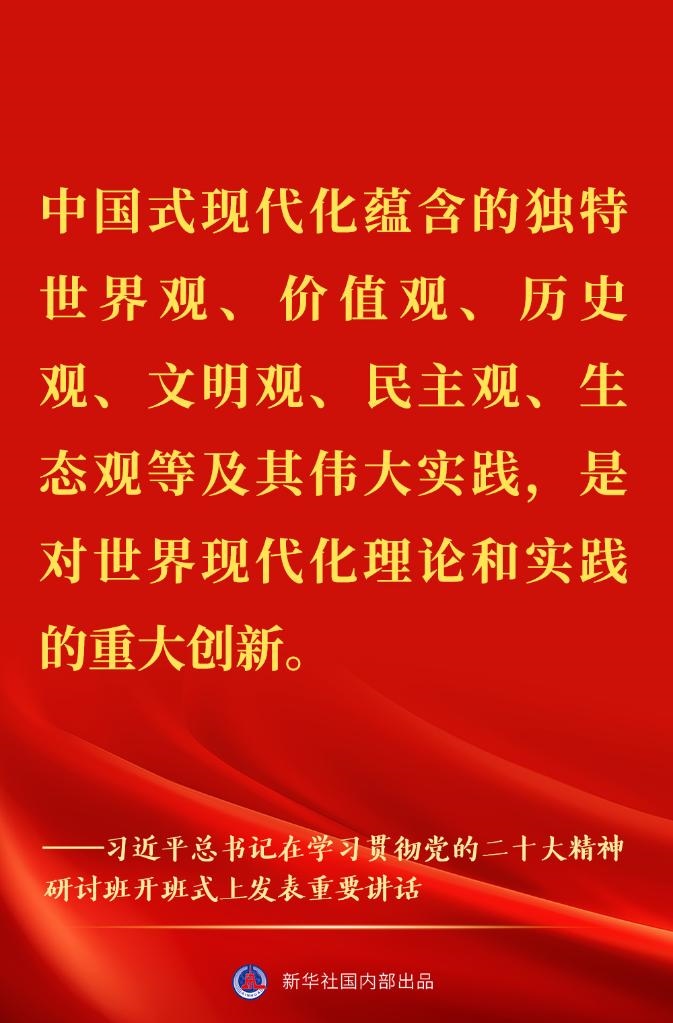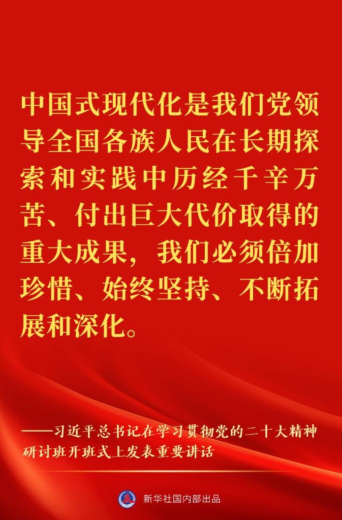 “正確理解和大力推進(jìn)中國(guó)式現(xiàn)代化”——習(xí)近平總書(shū)記在學(xué)習(xí)貫徹黨的二十大精神研討班開(kāi)班式上重要講話(huà)金句來(lái)了!