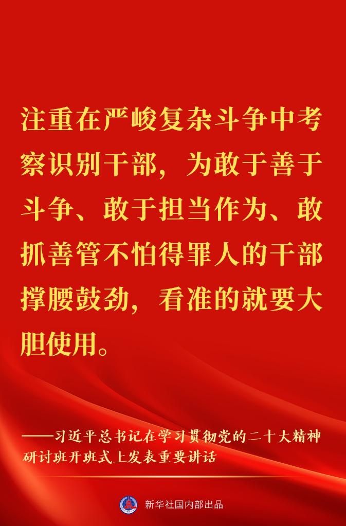 新進(jìn)中央委員會(huì)的委員、候補(bǔ)委員和省部級(jí)主要領(lǐng)導(dǎo)干部學(xué)習(xí)貫徹習(xí)近平新時(shí)代中國(guó)特色社會(huì)主義思想和黨的二十大精神研討班7日上午在中央黨校(國(guó)家行政學(xué)院)開(kāi)班。中共中央總書(shū)記、國(guó)家主席、中央軍委主席習(xí)近平在開(kāi)班式上發(fā)表重要講話(huà)。一起來(lái)看金句↓