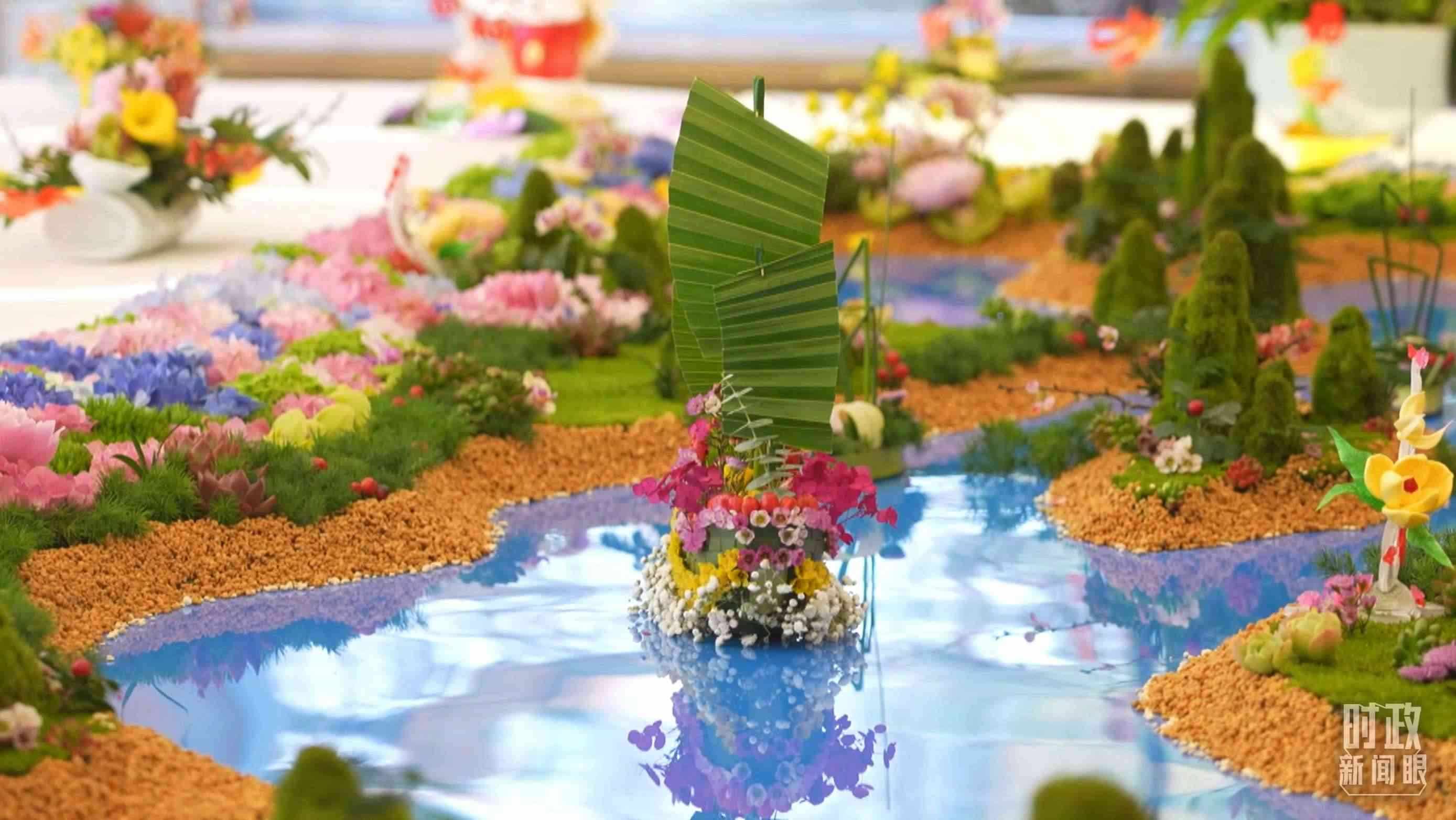 △2月10日會見結束后,習近平為洪森舉行了宴會。這是宴會現場的帆船造型。(總臺央視記者蔣碩拍攝)