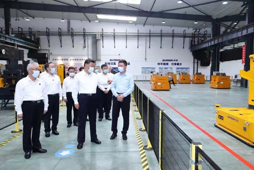 △2022年8月17日,習近平總書記在遼寧沈陽新松機器人自動化股份有限公司生產(chǎn)車間考察調研。
